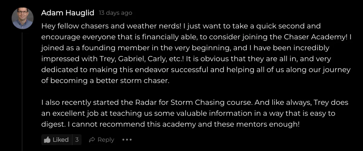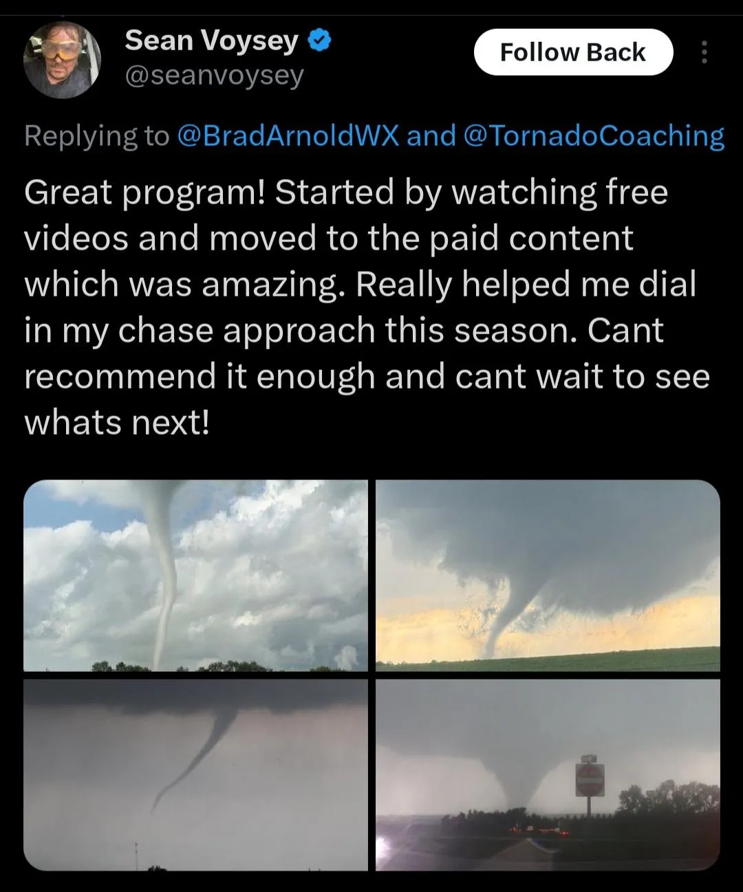 in-depth training modules complete with comprehensive quizzes for each video. learn how to forecast and chase storms just like the professionals.